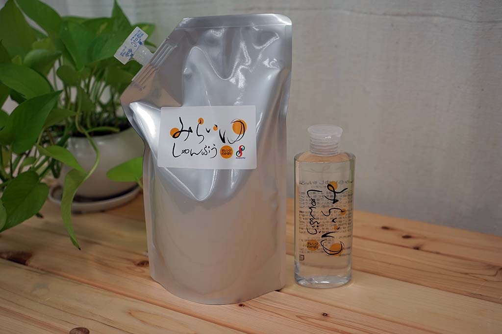 右の写真「節約泡ボトル(泡工房)」でみらいゆしゃんぷぅをお好みで薄めて節約してお使いください。(3~5倍程度が目安です)