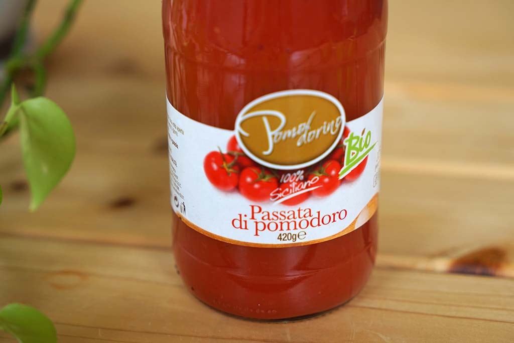 自然豊かなイタリアで育った完熟トマトを裏ごしして、自然のままに瓶詰めしてお届け。