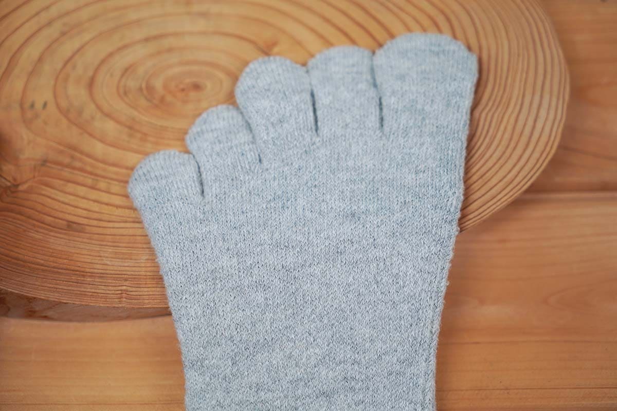 | 特徴 | 履き心地を追求し、足の形に合わせた自然なフォルムへのこだわり 5本指の持つ本来の心地よさを追求した指股ライン 内側を部分的にエアーイン編みにすることにより、生地が厚くクッション性の高いソフトな履き心地 絹→綿→絹→綿の4層構造により、冷えとり効果を高め、足を冷えから守ります |