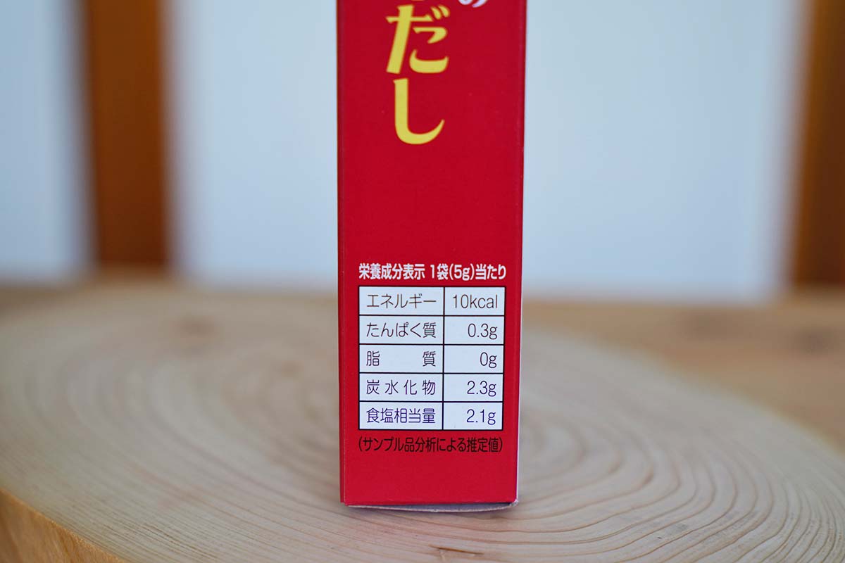 | 原材料 | 食塩(天塩)、甘藷でん粉(国内産)、メープルシュガー(カナダ産)、醤油、玉ねぎ(国内産)、酵母エキス、野菜エキス[にんじん・玉ねぎ・白菜・セロリ・舞茸(国内産)]、生姜(国内産)、白こしょう(マレーシア・インドネシア産)、にんにく(アメリカ産) |