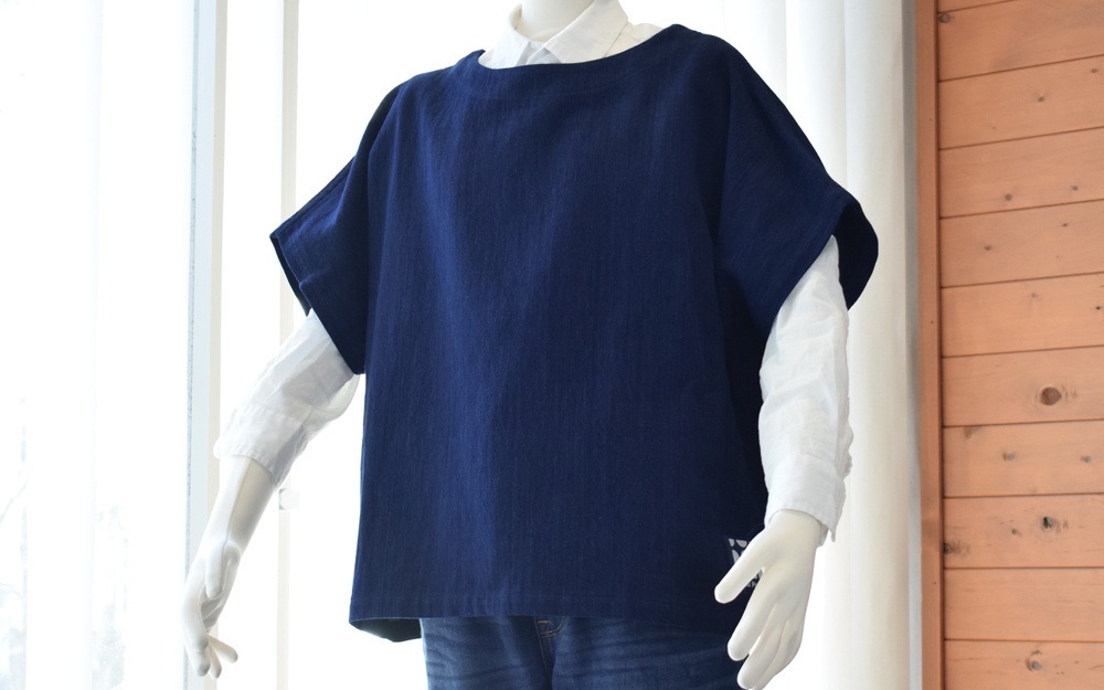 先染め糸から作った女性用のシャツ。その名の通り、”ぱふっ”と着られます。