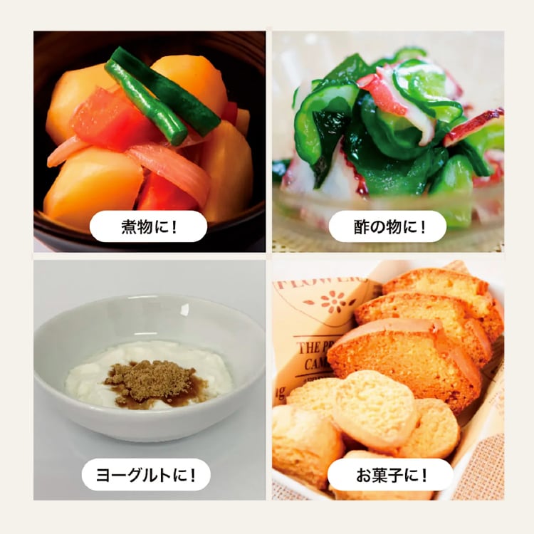 お菓子作りや料理はもちろん、コーヒーや紅茶に入れても、その美味しさが際立ちます。ヘルシー志向の方にもぴったりの素材です。