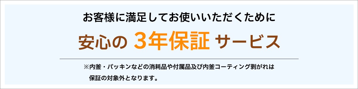 保証期間はお買い上げ日から3年です。保証期間内でも有料になる場合がございますので、ご了承ください。
