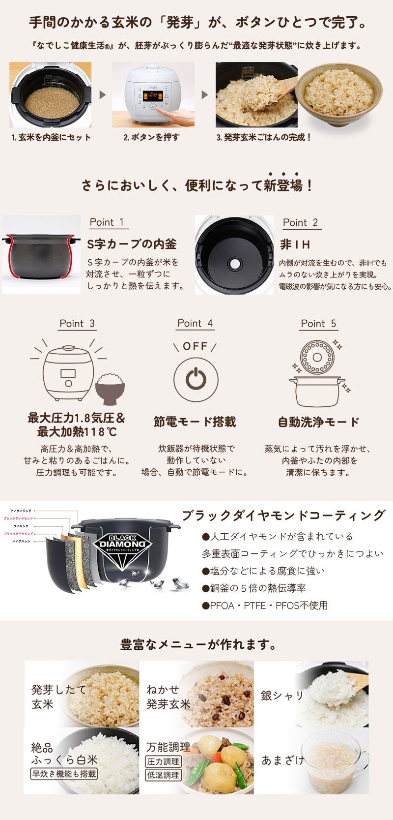 なでしこ健康生活【炊飯器】 酵素玄米ごはんがワンタッチで炊ける 非IH キャンペーン中
