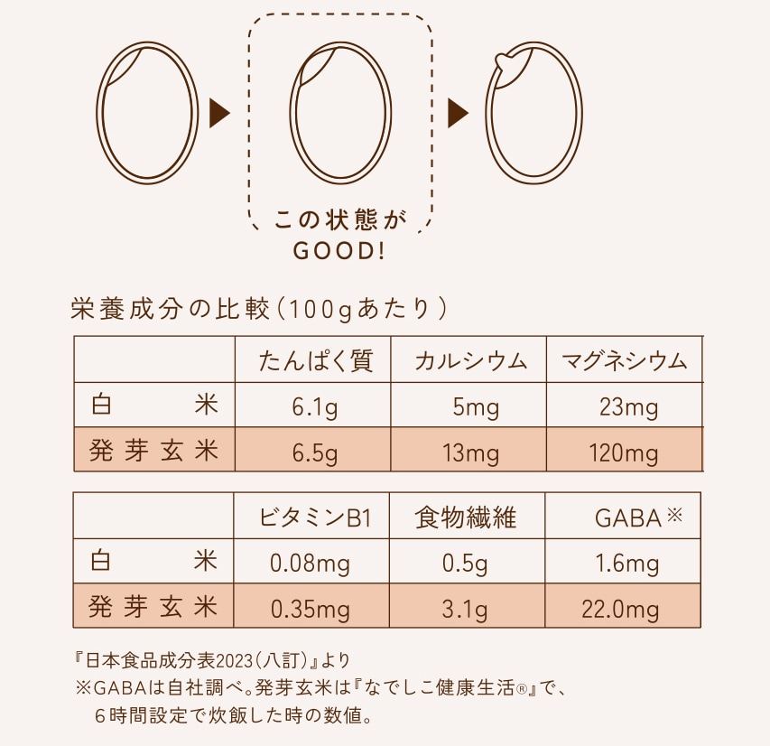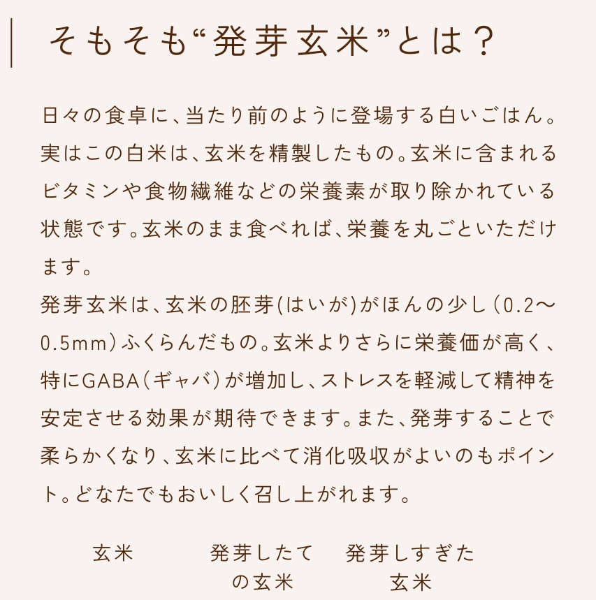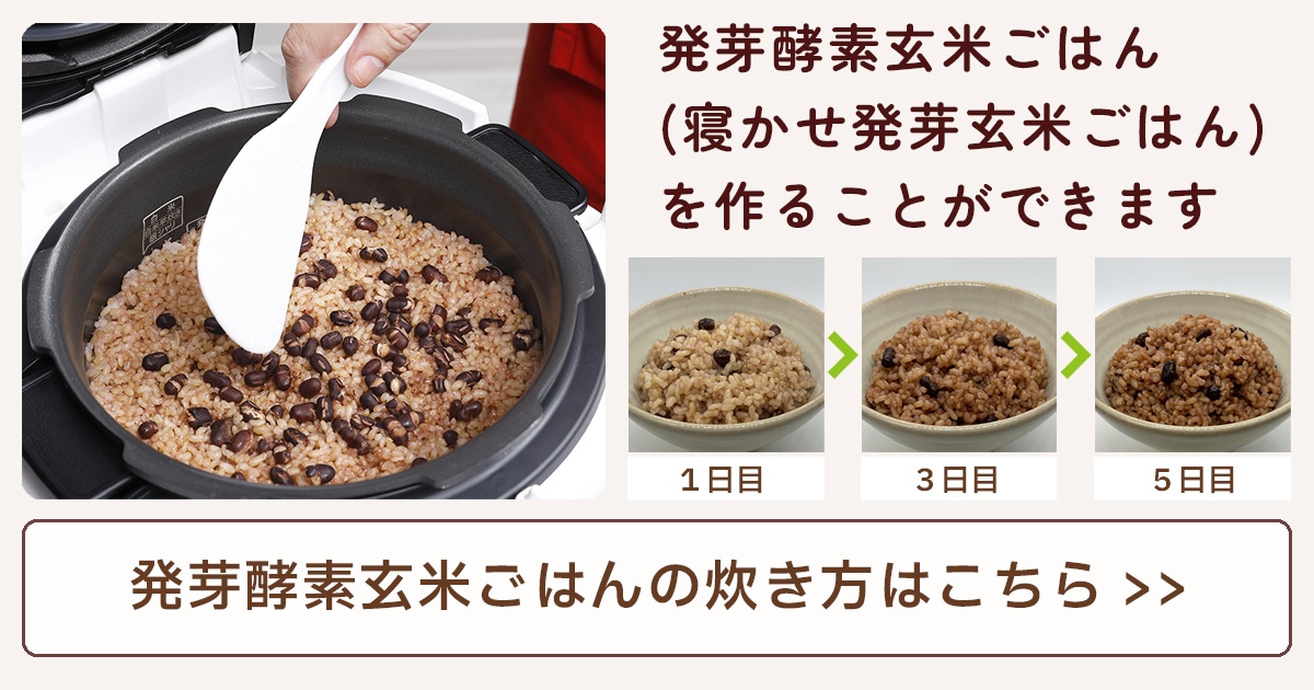 スイッチを押したら、発芽させる→圧力でふっくら柔らかく炊き上げる→保温するが自動で行われ、まさに手間いらずです。
